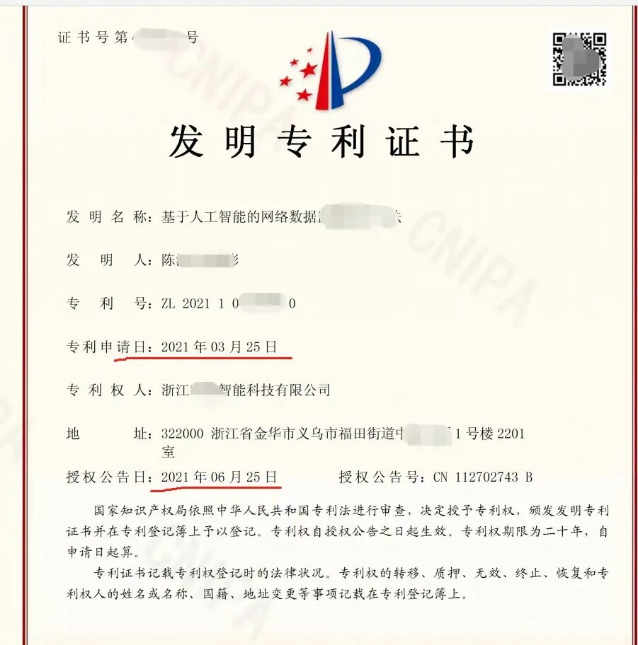 发明专利从3月25日提交申请,到6月25日下证共3个月!!!