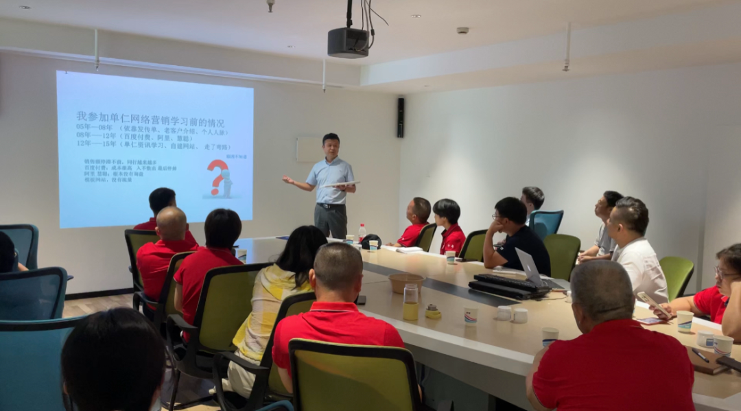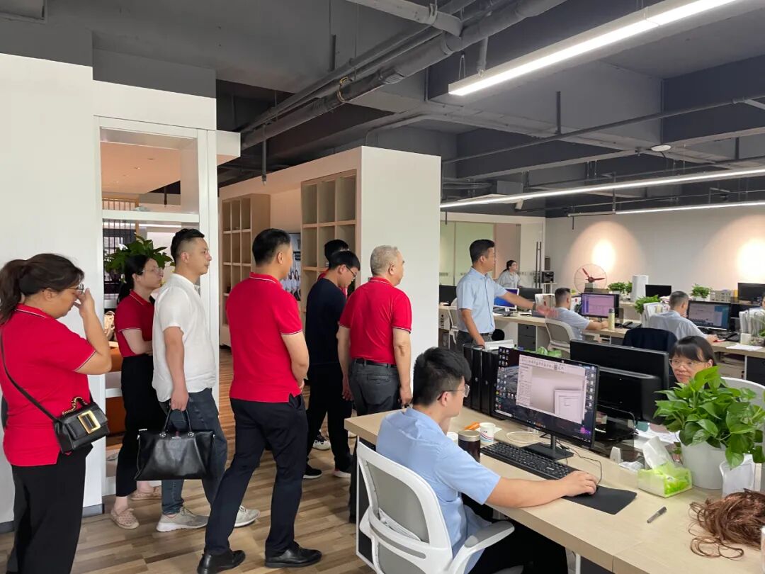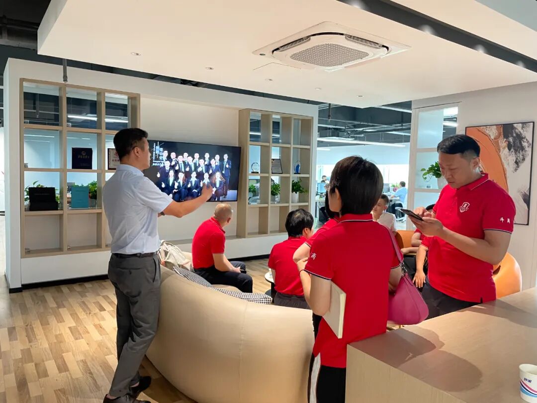 共同交流企业如何开展网络营销工作,总经理吴申龙做了知识产权+互联网的经验分享,并带领与会企业家参观了公司的各个部门。